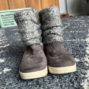 Worn but still in good condition. The sweater-like material has some piling throughout from normal wear. Please see pictures for signs of wear.