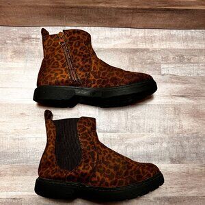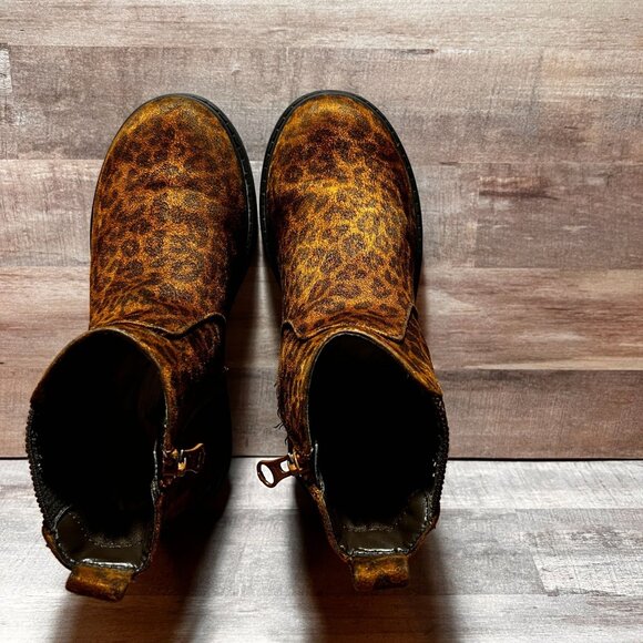 Cat & Jack Girls Brown Leopard Printed Ankle Boots Size 2 Side Zip Closure