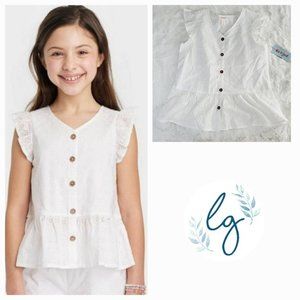 Cat & Jack Girls' Button-Front Woven Eyelet Sleeveless Shirt (small) 3KIDV-AH