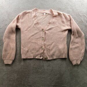 Cat & Jack Girls Cardigan Sweater Large V-Neck Pink Button-Up Cozy Knit Casual