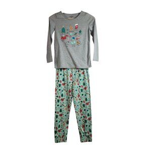Cat & Jack Green Gray Pajama Set 2 Pieces Long Sleeve Long Pants Pull On Pullover Christmas Theme Activities Holiday