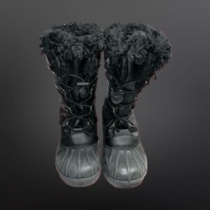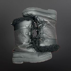 Cat & Jack Girls Constance Faux Fur Lace Up Winter Boots Black Glitter Size 2