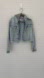 A gray-blue cropped denim jean jacket paired with a soft gray cloth hood — cute, cozy, and so easy to layer! 💙✨