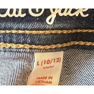 The Cat & Jack Girls' Denim Overalls in size 10/12 are a stylish one-piece outfit perfect for casual occasions. Made of a comfortable and stretchy blend of polyester, spandex, and cotton denim fabric, these super stretch skinny leg overalls in a dark wash blue color are machine washable for easy care. With a solid pattern and a 26-inch inseam, these overall-style jeans from the trusted brand Cat & Jack are a versatile choice for any season. Made in Vietnam, these overalls are a trendy addition to any girl's wardrobe.