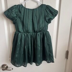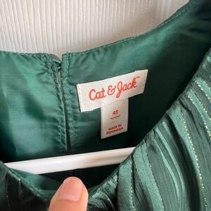 Keywords: Cat & Jack, girls dress, green dress, metallic dress, party dress, puff sleeve, size 4T, kids dress, holiday dress, special occasion, striped dress, toddler dress, dressy, lined dress