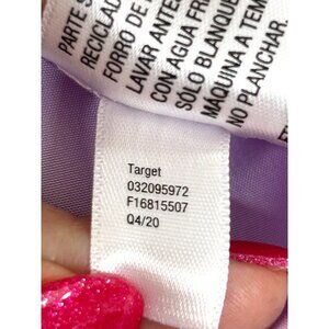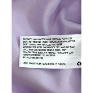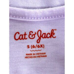 0172B- Cat & Jack Girls’ party dress, special occasion, lavender, S 6/6X, short, ruffled, cap sleeves, round neckline, Stretchy solid bodice, fit and flare, double overlays with daisy pattern, small white daisies with sparkly gold centers. Lined, made in Vietnam. Top body: 60%, cotton, 40% recycled polyester, skirt: first and second layer 100% recycled polyester, skirt lining: 100% recycled polyester. Wash before wearing. Wash inside out. Machine wash cold, with like colors, gentle cycle, only non chlorine, bleach, tumble dry low, remove promptly, no iron, Target 04/20. Please note. *** there is a tiny stain on the right chest. See photo.
