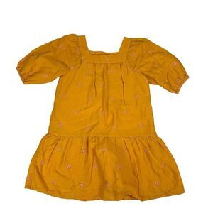Cat & Jack Girls Eyelet Woven Short Sleeve Dress Size 6/6X Mustard