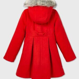 Cat & Jack Girls' Faux Fur Trim Coat, Red, Size L