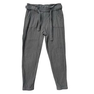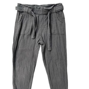 Cat & Jack Girls Gray Cotton Gauze Jogger Pants Size 6/6X Belted Pull-On Casual