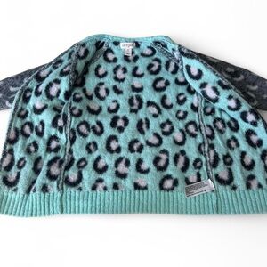 Cat & Jack Girls Gray/Mint Leopard Print Open Layering Cardigan Sweater – 4T