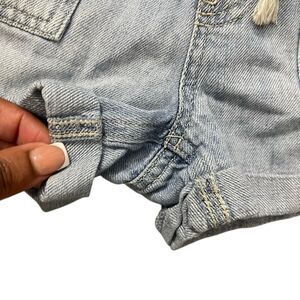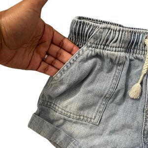 Cat & Jack Girls Light Wash Pull-On Denim Shorts Small 6/7 Drawstring Cuffed