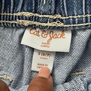 Cat & Jack girls denim shorts, Cat & Jack shorts size 6/7, girls light wash denim shorts, girls pull on jean shorts, elastic waist denim shorts girls, cotton denim shorts kids, Cat & Jack girls rolled cuff shorts, drawstring denim shorts girls, casual summer shorts girls, Cat & Jack kids clothes
