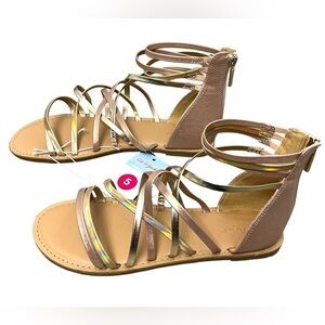 NWT Cat & Jack Girls Rose Gold Dion Gladiator Sandals. Size 5. Super cute sandals! Metallic shine with zipper on the back. Ankle strap & open toe.