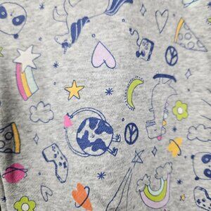 In the realm of children's fashion, where imaginations run wild, this Cat & Jack hoodie stands as a canvas of whimsy. Adorned with vibrant symbols of peace, rainbows, and celestial wonders, it envelops its wearer in a cozy embrace. As zippers glide up, adventures unfold, crafting stories among the stars.