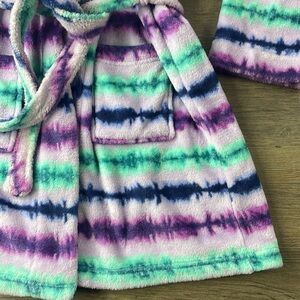 Cat & Jack Girls Purple Blue Green Tie Dye Fleece Bath Robe, size M 7-8. Super cozy robe. In good used condition.