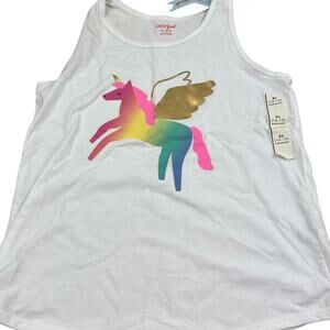Cat & Jack Girls' Rainbow Unicorn Printed White Tank Top - Size XL - NWT