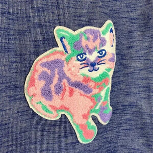 Cat & Jack Girls Shirt Dress Medium 7/8 Patchwork Pastel Cat Short Sleeve Knit