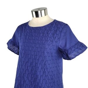 Cat & Jack Girls Size XL 14/16 Blue Flutter Sleeve Eyelet Detail Relaxed Fit Top