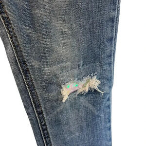 Cat & Jack Girls Skinny Jeans Size 6 Distressed Sequins Light Wash Stretch Denim