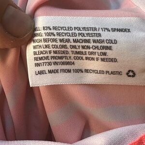 Charming pink and gray striped rashguard. Features a cute ruffle detail. Ideal for fun in the sun. Great condition preowned. No stains to tears.