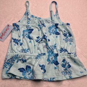 Cat & Jack Girl’s Tank Top Light Blue Hibiscus Tropical choose your size 👇
