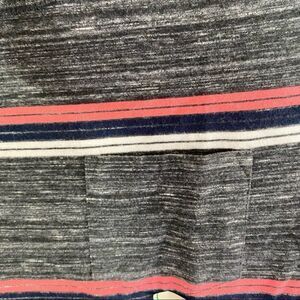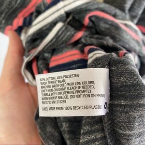 Gray and pink and blue and white striped basic top
