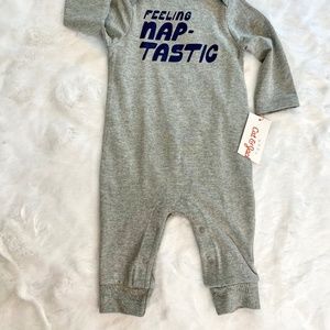 Cat & Jack Gray Playsuit "Feeling Nap-Tastic" Snap Leg Closure 0-3M - NWT
