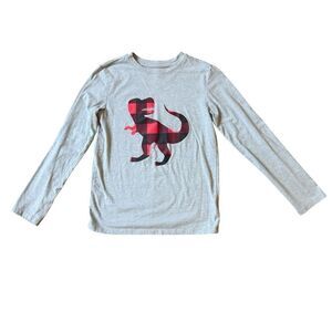 Long sleeve gray shirt with red and black plaid t-Rex dinosaur from Cat & Jack. Boys size medium {8-10}. Material: 60% cotton, 40% recycled polyester. Good gently used condition.