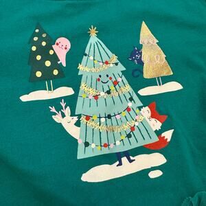 Cat & Jack Green Holiday Theme Long Sleeve Skirted Top sz M (7/8)