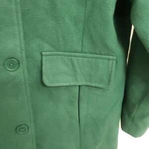 Stay warm and stylish with this elegant green coat featuring a cozy faux fur-trimmed hood. Perfect for chilly days.