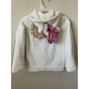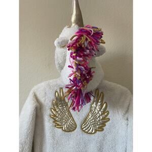 Cat & Jack Ivory 3D Unicorn Horn Hair Ears Zip Up Girls’ Plush Hoodie Jacket Size 4/5