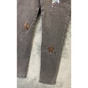 Cat & Jack Jeans Girls 12 Flip Sequin Star Skinny Super Stretch Adjustable Waist. Preowned in good condition. Black/Gray faded jeans with a snap closure and adjustable waist.
