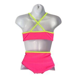 Cat & Jack Junior Girls Bikini Set Pink/Neon Green Two-Piece Swimwear Size XL