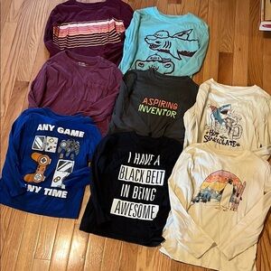 Lot of eight boys long sleeve T-shirts all size extra small, except for the top right shark one is a 5T. Brands are Cat and Jack and children’s place. Great condition.