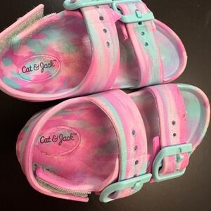 Keywords: Cat & Jack, Kids sandals, Girls sandals, Tie dye sandals, Size 6, Pink and blue, Adjustable buckle, Summer shoes, Play shoes, Toddler sandals, Childrens sandals, Casual sandals, Comfortable sandals