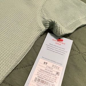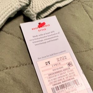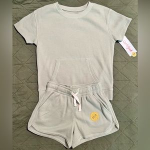 Sage green waffle-knit matching set. 5t is new with tags, 2t short has tags, shorts were washed but never worn. Color is closer to stock photo, wasn’t showing up well in lighting.