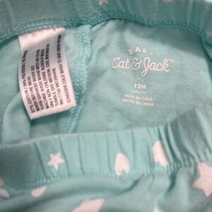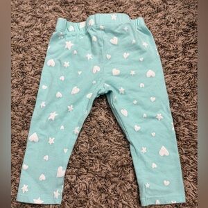 Adorable mint leggings with white heart and star pattern. Ideal for a fun outfit.