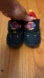 Navy sneakers with vibrant rocket design. Features red and yellow accents. Ideal for space-loving kids. Light up.