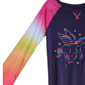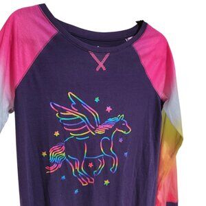 Super comfy Cat & Jack rainbow unicorn sleep nightgown for girls with rainbow tie-dye long sleeves.