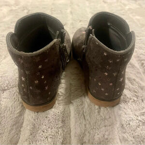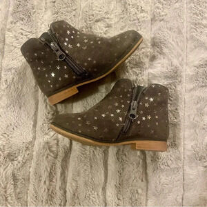 Perfect for fall and winter. Gray suede boots with silver stars. Little heel. Zips up side. Signs of normal wear for shoes.