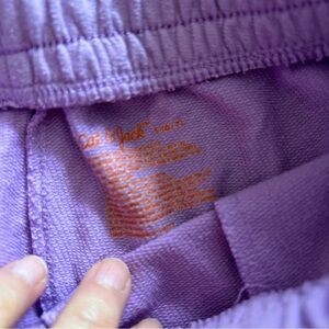 In good preowned condition. Set of three casual shorts in pink, black, and purple. Comfortable and stylish for everyday wear.