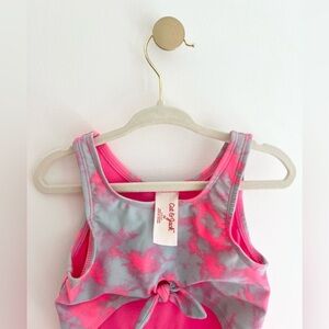 Cat & Jack bright pink and light aqua one piece. Features tie accent and open belly front. Fun and stylish for pool days.