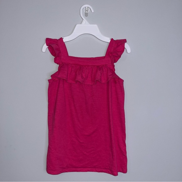 This delightful pink tank top from Cat & Jack features playful ruffled shoulder straps and a square neckline. Made from lightweight fabric, it offers a loose, flowy silhouette perfect for warm weather.