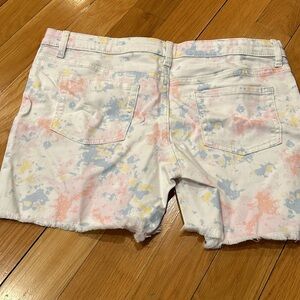 These Cat & Jack shorts feature a delightful blend of white and pink hues, perfect for a casual summer day. The shorts have a relaxed fit with a frayed hem, adding a touch of laid-back style to your outfit. Enjoy the comfort and unique design that make these shorts a must-have for warm weather.