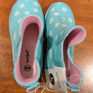 Cat & Jack Polka Dot Rubber Rain boots Size L 9/10 Ankle boots NEW with Tags