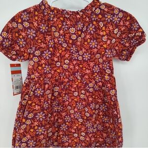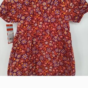 Charming floral dress by Cat & Jack. Features vibrant purple and orange colors. Perfect for casual outings and extra durable for play. Charming puffed short balloon sleeves, and it's lined to give the skirt a little extra fluff and flair!