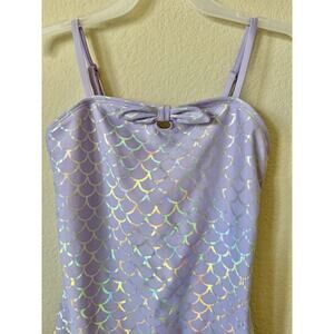 Cat & Jack Purple Iridescent Mermaid Scales Bow Adjustable Straps Girls’ One Piece Swimsuit Size XL 14 Extra Large 14