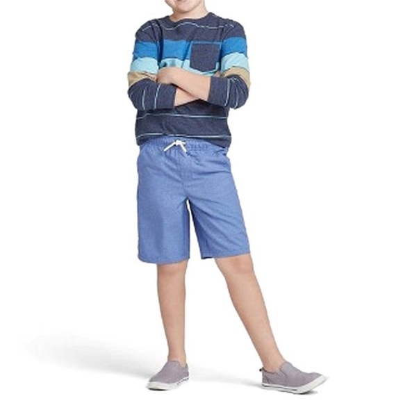 Like new elastic drawstring waist quick dry shorts. Two side slit pockets & 2 back patch pockets. A great pick with a variety of tees, button-downs or tanks. Materials: 100% Polyester.
