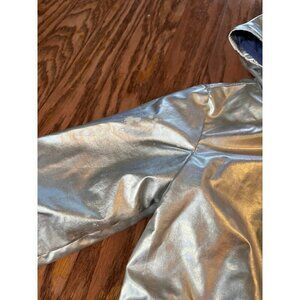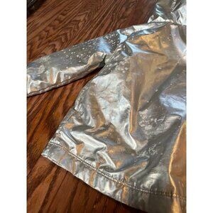 Cat & Jack brand rain jacket, size 2T. Such a cute jacket but for some reason the silver has spots all over it - it’s like spots where the silver has worn or washed off. This has only been worn a handful of times.