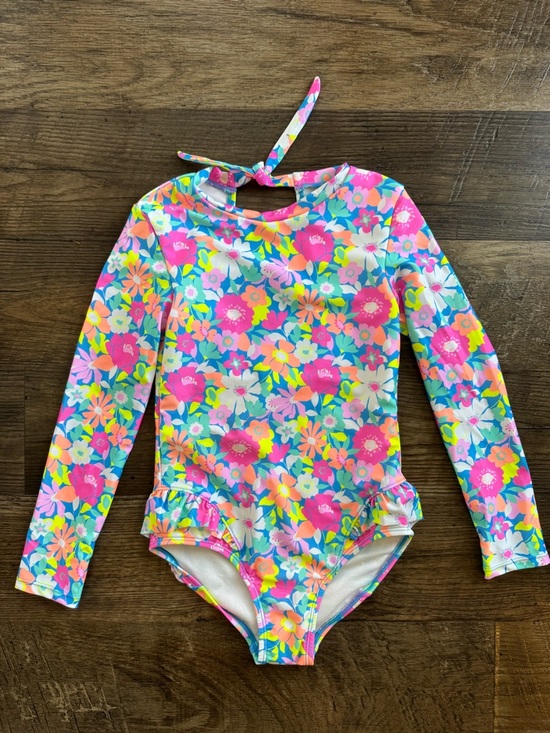 Cat & Jack Girls Retro Row Floral Rash Guard One Piece Swimsuit ~ NWOT ~ Size Medium